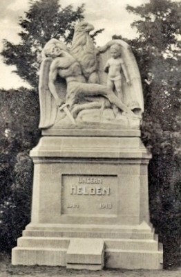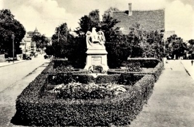 Ehemaliges Denkmal für die Gefallenen des Ersten Weltkriegs an einer Straßengabelung (ehemals A. Hitlerstraße): Abgestufter Quader mit Widmung und aufgesetzter Plastik eines sterbenden Kriegers mit Schwert und eines Kindes, die von den Schwingen eines großen Adlers beschirmt werden (abgerissen).