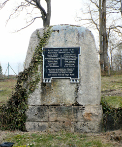 Steindenkmal mit eingelassener Tafel für die Opfer der Explosion in der Pulverfabrik in Rübeland.