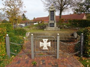 Denkmal in Holtrop für die Gefallenen beider Weltkriege. An den vier Seiten der Stele die Namen, unten eine Tafel. Die Stele ist gekrönt mir einer goldenen Kugel.