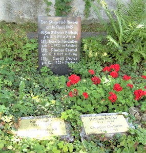 Am Hauptweg des Friedhofs, linke Seite neben Kirche, befindet sich eine Steinplatte für vier Flieger, die hier bestattet sind.