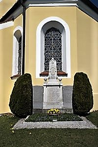 Kriegerdenkmal an der Außenseite der Kirche Mariä Himmelfahrt.