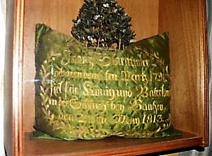 auch Gedenkkissen und Ehrenkrone in der Kirche |