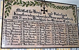 Die Gedenktafel des 1. Weltkriegs in der Kirche enthält die Geburtsdaten, die nicht auf dem Denkmal