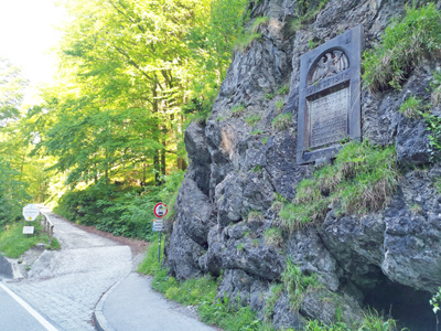 Oberhalb der Straße befindet sich hier eine Gedenktafel des ADACs für seine im Ersten Weltkrieg gefallenen Mitglieder von 1922.
