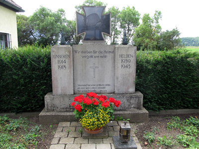 Das Betondenkmal mit Eisernem Kreuz ohne Namen erinnert an die Opfer beider Weltkriege.