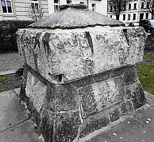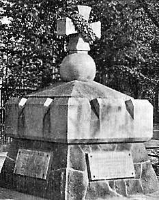Nach 1945 wurden die Tafeln und die krönenden Teile abgerissen, sodass der Sinn des Denkmals ist heute nicht mehr erkennbar ist.