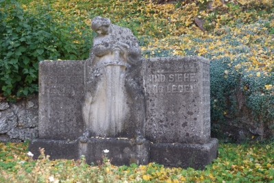 Die linke Stirnseite mit Namen ist wegen Verwitterung bereits schlecht lesbar.