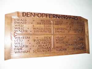 Die Gedenktafel für die Gefallenen des 2. Weltkriegs wurde in den 1950er Jahren angefertigt.