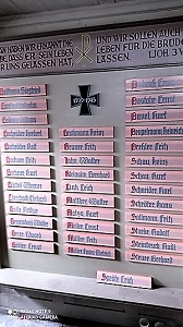 und den Namen der Mitglieder der Gemeinde gestaltet. Einzelne Namen sind dabei im Vergleich zum Denkmal