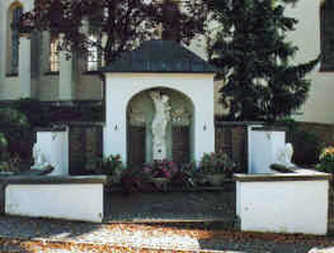 Denkmal, nördlich der Pfarrkirche St. Gallus, in Form eines Bildstockes ausgeführt, in dem sich die Skulptur des Hl.Sebastian befindet. Die Skulptur wird flankiert von zwei steinernen Tafeln mit den Namen der Gefallenen und Vermissten des 1.Weltkrieges, die mit Darstellungen von Kriegsszenen bekrönt sind.