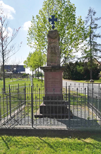 Obelisk mit Eisernem Kreuz auf der Spitze, oben mit Kranz umwunden, auf der Stirnseite (verwitterter) preußischer Adler.