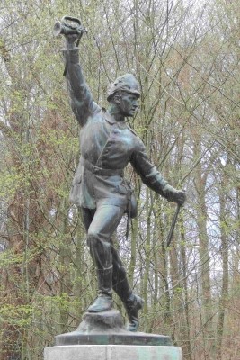 Das Denkmal wurde 1921 vom Bildhauer Hugo Berwald geschaffen. Es hat als eines der wenigen Regiments-Denkmäler auf dem Gebiet der ehemaligen DDR diese Zeit unbeschadet und komplett überstanden. Die Angehörigen des Bataillons waren alle in forstwirtschaftlichen Berufen tätig die auf dem Denkmal angegeben sind.