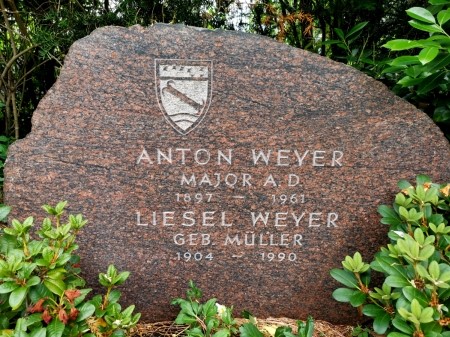Grabstein, geschmückt mit Eisernen Kreuz, an Familiengrabstelle |