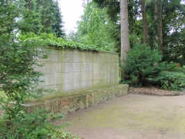 Zwei Obelisken mit Eisernem Kreuz stehen rechts und links vom Eingang. Der Weg ist von Büschen und Bäumen flankiert und führt an zwei gewaltigen Mauern aus Steinquadern vorbei, in die die Namen von ca. 800 Kriegsopfern der Stadt Lüneburg chronologisch eingemeißelt sind.
