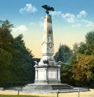 Ehemaliges Denkmal für die Gefallenen der Einigungskriege 1864, 1866 und 1870/71: Verzierter Quader mit Säulen und aufgesetzten Adlern an den Ecken. Darauf ein Obelisk mit dem Relief einer Kanone mit Fahnen und einem krönenden Adler auf einer Kugel (abgerissen).
