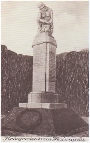 Das Denkmal für die Opfer des Ersten Weltkriegs in Vysoká wurde am 11. Oktober 1925 enthüllt und von Pfarrer Alfons Schlosser aus Schönficht eingeweiht. Es steht im Zentrum des fast wüsten Dorfes Maiersgrün in der ehemaligen Grenzzone, am Eingang Maiersgrün - Hof auf dem Weg nach Altwasser und wurde für 10.950 Kronen geschaffen, die durch freiwillige Spenden und Sammlungen erzielt wurden. Ihr Gestalter war die Egerer Steinmetzfirma Hans Hollering nach dem Entwurf des Bildhauers Johann Adolf Mayerl, der es als fast vier Meter hohes Denkmal konzipierte, das auf einer kleinen Pyramide und einem runden Sockel steht. Im oberen Teil verwandelt sich das Denkmal leicht in einen Kegel, und das Ganze wurde durch eine Skulptur eines knienden Soldaten mit Helm und einem Trauerkranz in seinen Händen vervollständigt. Laut der erhaltenen Skizze soll auf dem Denkmal eine Inschrift gewesen sein. An den Seiten wurden die Namen der gefallenen, verstorbenen oder vermissten Soldaten angebracht.