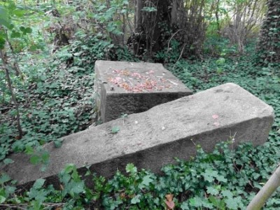 Leider sind dort nicht alle Perspektiven abgebildet. Auf den heute zusammengerückten Steinen kann man im Zwischenraum noch das Wort „Malitsch“ erkennen, aber nicht den Anfang der Widmung.