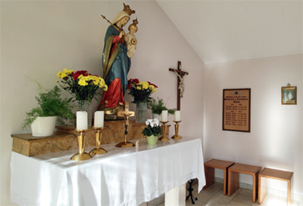 Hölzerne Gedenktafel in der Kapelle.
