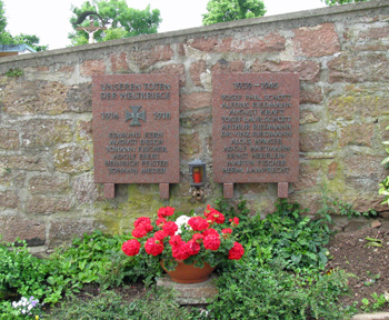 Zwei Gedenktafeln an der Friedhofsmauer neben der Kirche St. Ägidius.