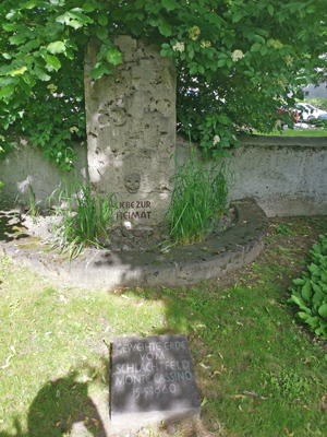 Des Weiteren befinden sich hier ein Stein mit Relief aus Kreuzen und einem Totenkopf für die Vertriebenen.