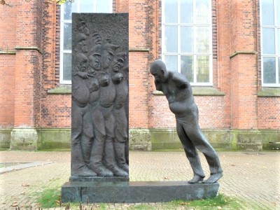 Evangelische Bürgermeister-Smidt-Gedächtniskirche, in der Stadt bekannt als „Große Kirche“: Unmittelbar neben dem Kirchengebäude ein eindrückliches Mahnmal zum Gedenken an alle Opfer des Nationalsozialismus und Antikriegsdenkmal, geschaffen 1986 von dem Bildhauer und Künstler Waldemar Otto (1929 Petrikau, Polen - 2020 Worpswede, Deutschland).