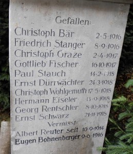| Musketier | BOHNEBERGER | Eugen Gottlob | 19.11.1896 Möttlingen | 09.06.1916 Verdun (Fort Vaux) |
