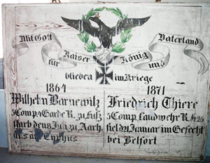 Gedenktafel 1864 und 1871 in der Kirche. Gefallener von 1813 gemäß Kirchenbuch.