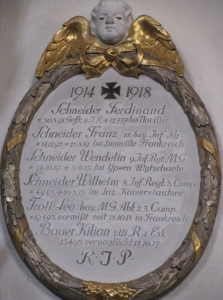 Gefr. | SAUERACKER | Richard | 01.12.1895 Kürnach, Ufr. | 30.04.1918 am Kemmel in Flandern |