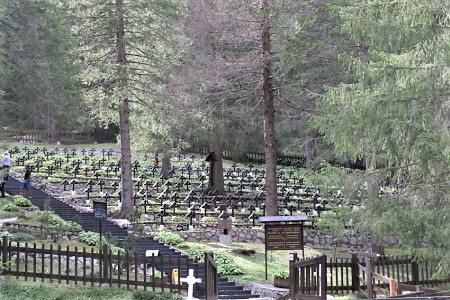 Südlich von Toblach, etwa auf halber Stecke zwischen Toblach und Schluderbach, liegt der Soldatenfriedhof aus dem Ersten Weltkrieg.