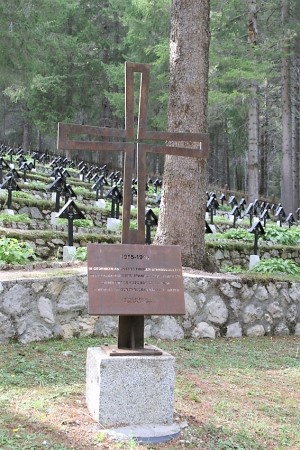 Metallkreuz in Tafel im Soldatenfriedhof Naßwand.