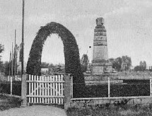 Denkmal für die Gefallenen des Ersten Weltkriegs: Abgestufte Stele mit krönendem EK-Zeichen. Nach 1945 wurde das obere Stück des Denkmals mit dem EK entfernt und eine Christusfigur aufgesetzt. Alle Inschriften wurden komplett entfernt.