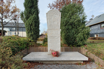 Denkmal aus Granit ohne Namen an der Durchgangsstraße.