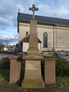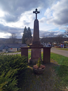 Hohe Denkmalstele mit krönendem Kreuz und Inschrift für die Feldzüge 1870/71 und den 1. Weltkrieg (ohne Namen.), der ehemaligen Gemeinde Neunkirchen/Nahe.