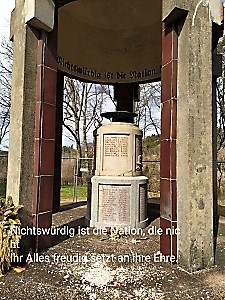 Gefallenendenkmal: Mehrere Stelen auf Friedhofsgelände.