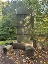 Denkmal für die Gefallenen des Ersten Weltkriegs. Das Kriegerdenkmal befindet sich etwas versteckt im Kurpark, bei der Napoleonschanze. Zwischen Gartenstraße und Mühlenstraße befindet sich ein Ententeich. Wenn man um diesen herum geht und dem kleinen Pfad zwischen den Bäumen folgt, sieht man das Kriegerdenkmal links auf einem kleinen Hügel.