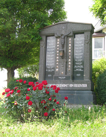 Standort des tempelartig aufgebauten Denkmals ist an der Einmündung Michaelsweg in die Obererthaler Straße gegenüber vom Friedhof.