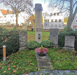 Auf der Nordseite der Pfarrkirche St. Peter und Paul in Augsburg-Oberhausen befindet sich ein Denkmal für die Gefallenen der beiden Weltkriege.