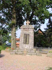 Aus großen Steinquadern gemauert steht das Denkmal auf drei Steinstufen, oben befindet sich ein Steinkreuz.