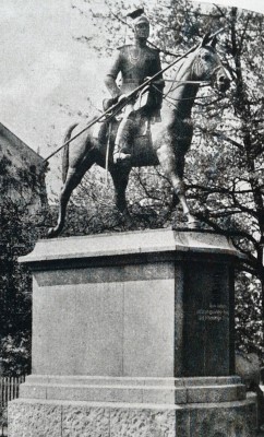Ehemaliges Denkmal für die Gefallenen des Ulanen-Regiments „Kaiser Franz Josef von Österreich, König von Ungarn“ (1. Königlich Sächsisches) Nr. 17 auf dem Douzy-Platz: Abgestufter Quader mit krönender Figur eines Ulanen zu Pferde mit einer Lanze in der Hand. Das Denkmal wurde nach 1945 abgerissen.