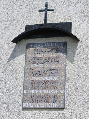 Wandplakette an der evangelisch-lutherischen Dorfkirche St. Peter und Paul.