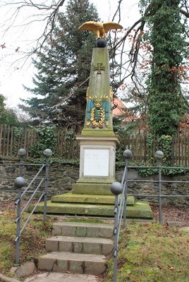 Vor dem Friedhof steht ein renovierter Obelisk ohne Namen für die Opfer 1870/71. Von den vier Seiten des Sockels ist eine mit Widmung versehen, drei sind leer. Die oberen Flächen zeigen sächsische Wappen hinterlegt mit Waffen und Fahnen, ein EK sowie vergoldete Siegerkränze, bekrönt das Ganze von einem Adler auf Kugel.