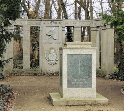 Die Stadt hatte für die Gefallenen des 1. Weltkriegs bereits ein Denkmal am Sportplatz errichtet. Doch dieses liegt heute auf Privatgelände und deshalb wurde dieser Gedenkstein wahrscheinlich hier am Kürassier-Denkmal errichtet, der auch Gedenken an die Gefallenen des 1. Weltkriegs enthält.