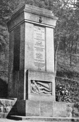 Von diesem Denkmal sind im Internet keine Abbildungen auffindbar. Das vorliegende Foto entstammt dem Buch „Deutscher Ehrenhain für die Helden von 1914/18“ im Dehain Verlag, Leipzig 1931. Dort ist vermerkt, dass das Denkmal von den Architekten Lossow & Kühne und dem Bildhauer Professor Wrba aus Dresden geschaffen wurde.
