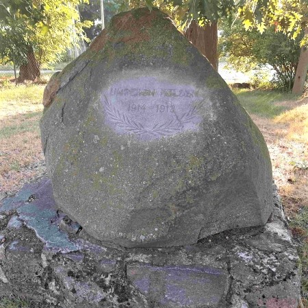 Die Denkmäler verzeichnen keine Namen. Wahrscheinlich gab es Gedenktafeln mit den Namen in der Kirche. Die Inschrift „Unseren Helden“ wurde teilweise herausgemeißelt.