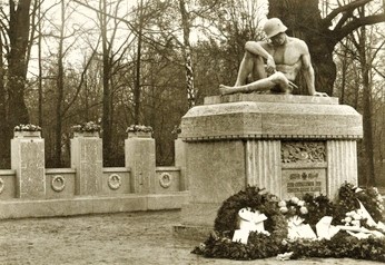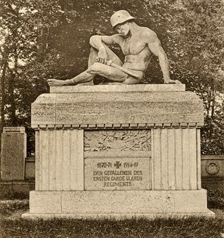 Ehemaliges Denkmal für die Gefallenen das 1. Garde-Ulanen-Regiments in den Krieg 1870/71 und im Ersten Weltkrieg: Verzierter Quader mit Widmung und darauf die Figur eines sitzenden, nackten Kriegers mit Schwert und Stahlhelm. Dahinter eine Reihe von acht niedrigen Stelen mit Namenstafeln, verbunden mit Segmenten mit Ehrenkränzen. Das Denkmal stand vor der ehemaligen Kaserne auf dem Ruinenberg an der Orangerie.