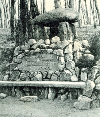 Ehemaliges Denkmal für das Genesenden-Bataillon im Ersten Weltkrieg am Brauhausberg. Es hatte die Form eines Hünengrabes vor dem ein Feldsteinhaufen mit Widmungstafel aufgestellt war.