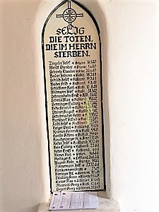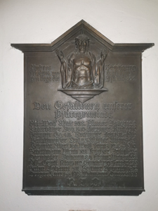 Alte Heilig-Geist-Kirche: Kriegergedächtnistafeln im Eingangsbereich (Nische).