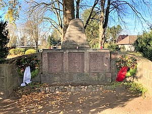 In der Mitte befindet sich ein Findling mit den Namen der Gefallenen aus dem Ersten Weltkrieg.
