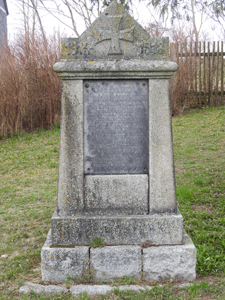 Denkmal aus Betonelementen mit eingesetzter Namenstafel.