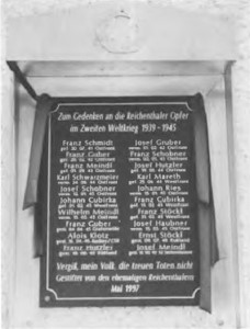 Rechts vom Eingang zur Reichenthaler Kirche wurde im Mai 1997 zum Gedenken an die Reichenthaler Opfer im Zweiten Weltkrieg eine Tafel mit den Namen der Gefallenen angebracht.